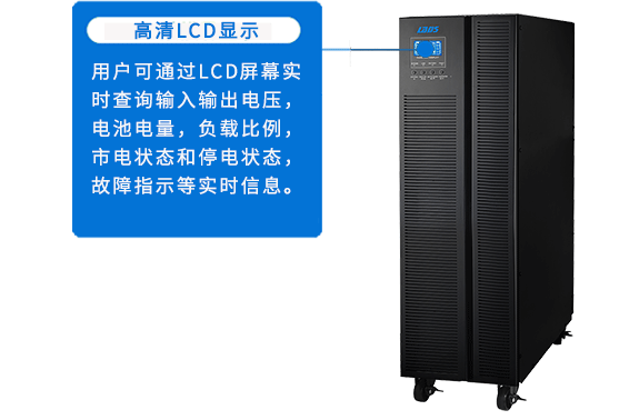 用戶可通過(guò)LCD屏幕實(shí)時(shí)查詢輸入輸出電壓,電池電量,負(fù)載比例,市電狀態(tài)和停電狀態(tài),故障指示等實(shí)時(shí)信息。